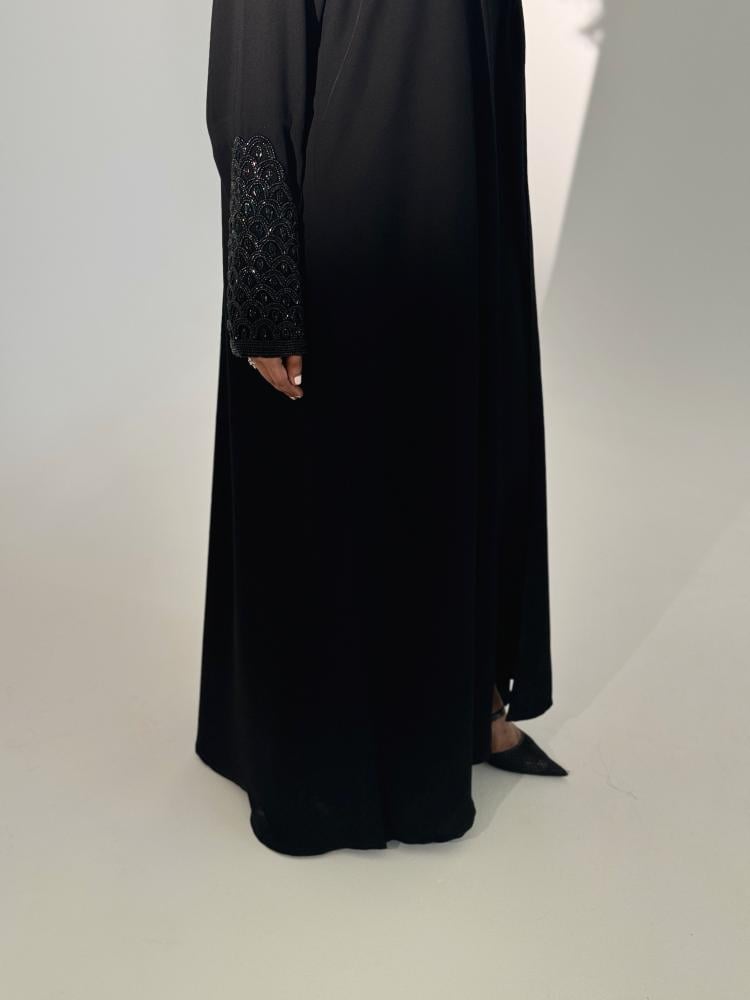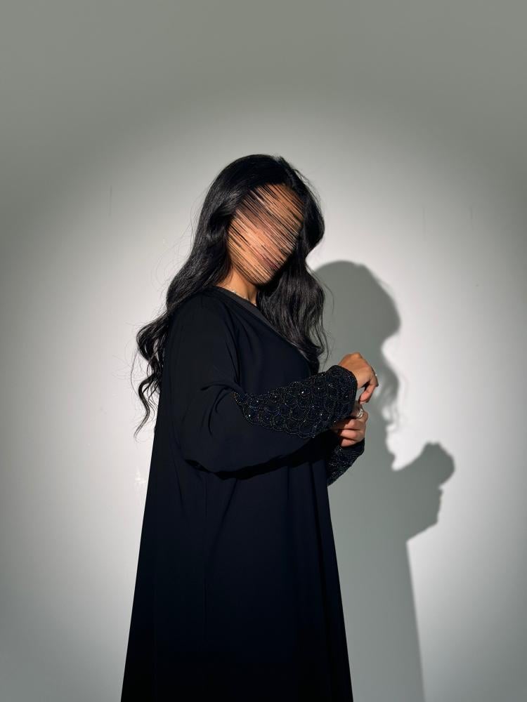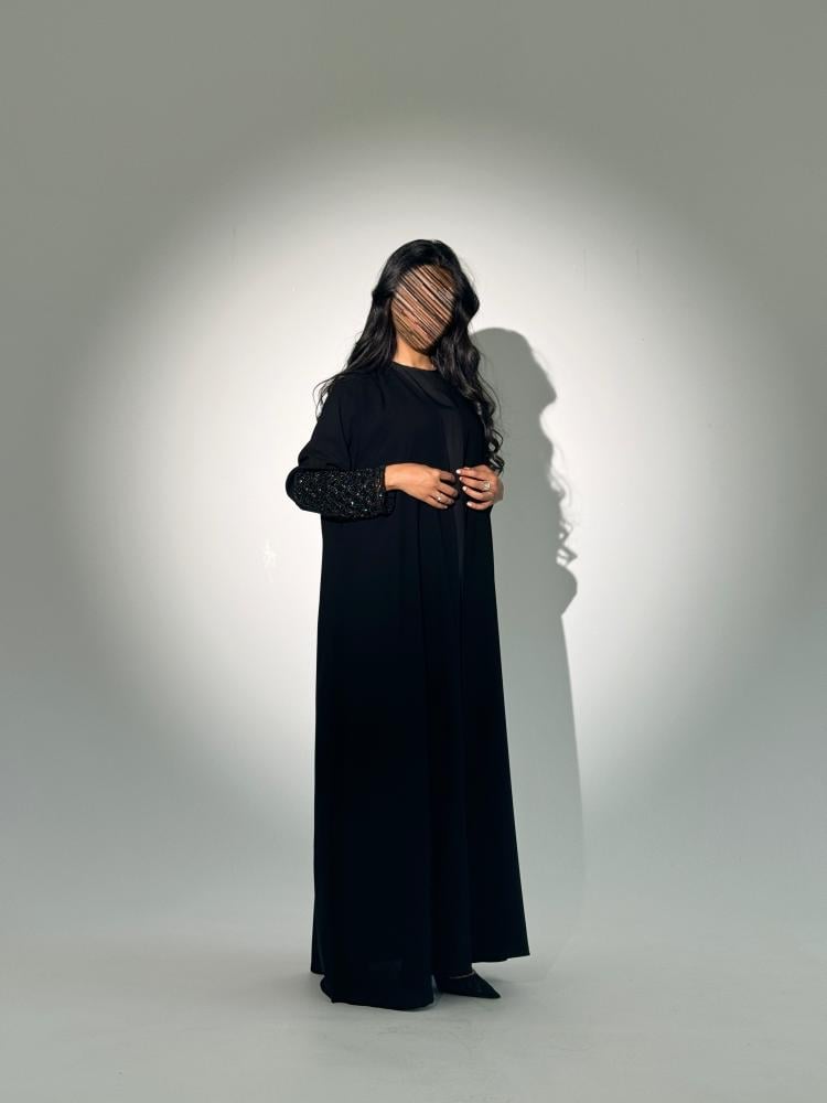 - نوع المنتج: عباية كريب ملكي مع أكمام شك.