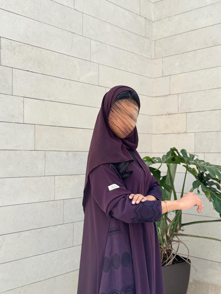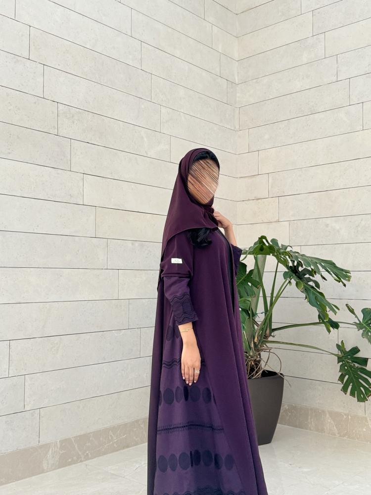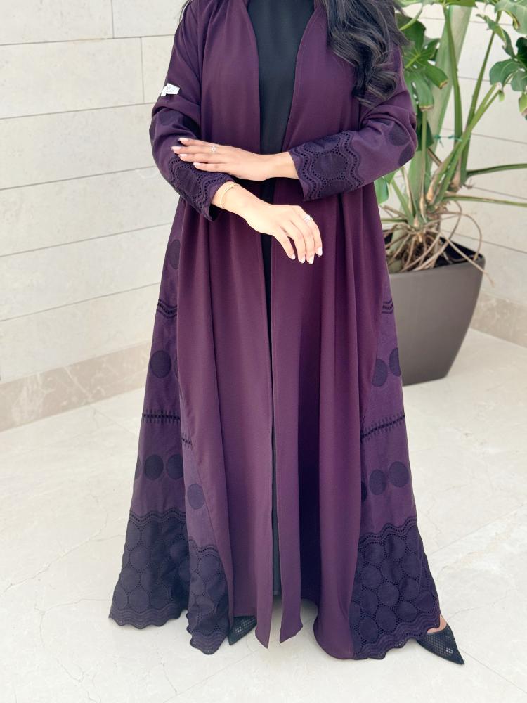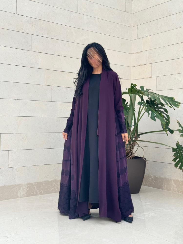 العباية البنفسجية الملكية هي خيارك الأول بتصميمها الفرد وما تحتويه من تطريزات عصرية.